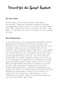 Die Welt befindet sich im Wandel und wir spüren es auch in unseren Beziehungen. Wir alle werden immer mehr dazu aufgefordert, uns emotional zu befreien und in die Selbstermächtigung und in die Eigenverantwortung für unsere Gefühle und Gedanken zu kommen. Hierbei hilft das Spiegel-Tagebuch. Denn das, was uns an unserem Partner / Geschäftspartner/Nachbarn oder stört, ist oftmals ein ungeliebter Anteil in uns selbst. Mit dem Spiegel-Tagebuch kommen wir unseren inneren Anteilen achtsam auf die Spur, integrieren sie in unser Leben und nehmen sie liebevoll an. Denn dann, geschieht etwas Wundervolles: Sie beruhigen sich und wir selbst werden innerlich ruhiger und gelassener.